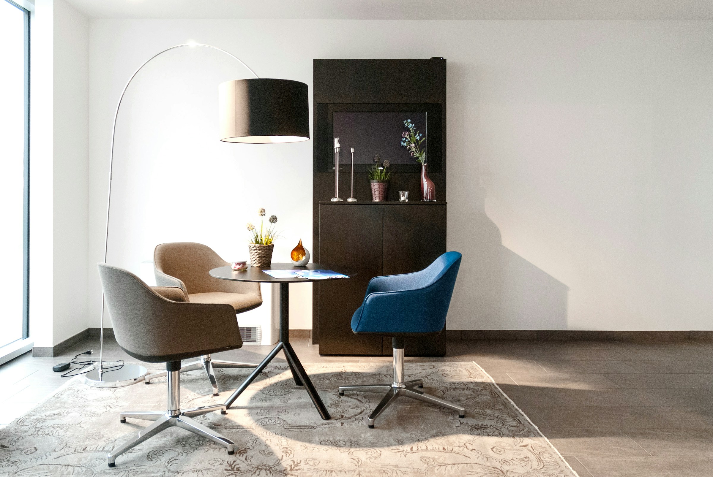 At the core of the design is a commitment to purity in form and function. The open-plan living space is arranged around a monolithic stone hearth, creating a subtle contrast to the transparency of the surrounding glass walls. Bespoke furniture, soft linen textiles, and sculptural lighting elements add warmth and depth to the otherwise restrained aesthetic. The balance between raw materials and refined detailing ensures the space remains inviting, offering both openness and intimacy.